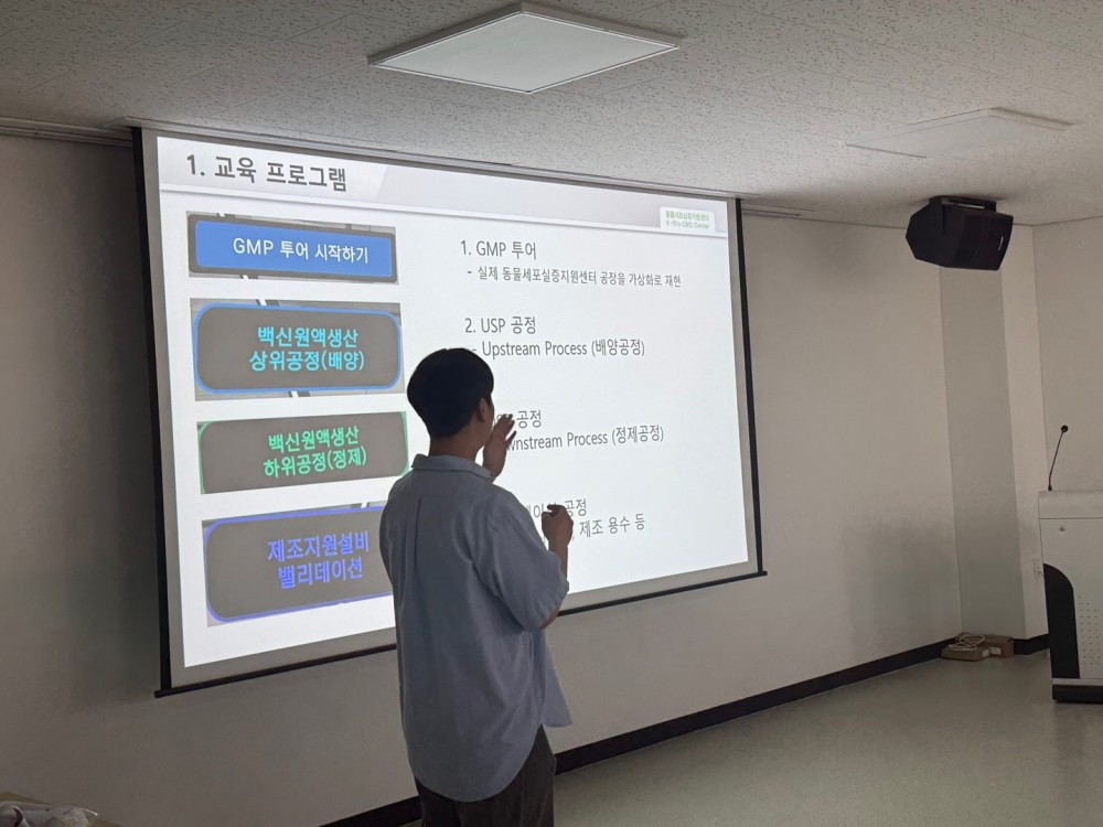 학생들은 제약 및 바이오 산업에 대한 이해를 돕기 위해 준비된 VR 교육을 체험하였고, 교육장 및 실증시설을 직접 투어하며 현장의 분위기를 생생하게 느낄 수 있었습니다.